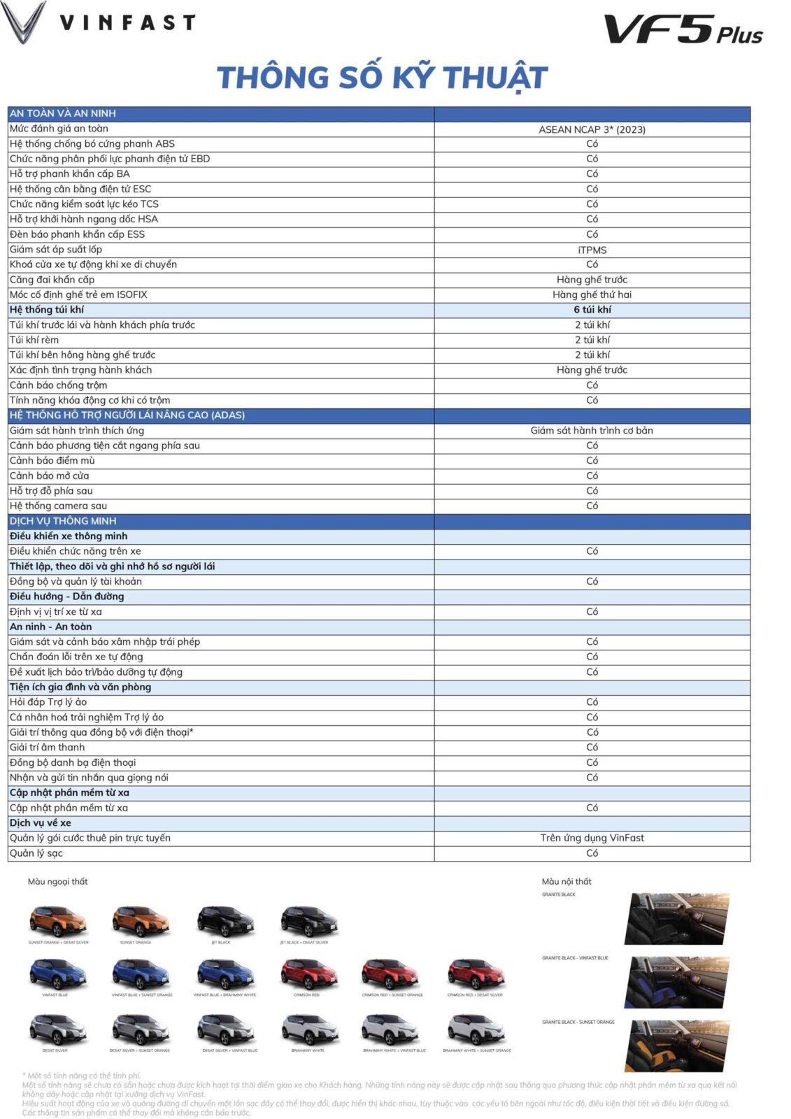 Các tính năng an toàn trê VF5 tiên tiến bậc nhất như: Giám sát hành trình cơ bản, Cảnh báo giao thông phía sau, Cảnh báo điểm mù, Cảnh báo luồng giao thông đến khi mở cửa, Hỗ trợ đỗ xe phía sau, Hỗ trợ phanh khẩn cấp, Hệ thống cân bằng điện tử, Hỗ trợ khởi hành ngang dốc, Giám sát áp suất lốp…